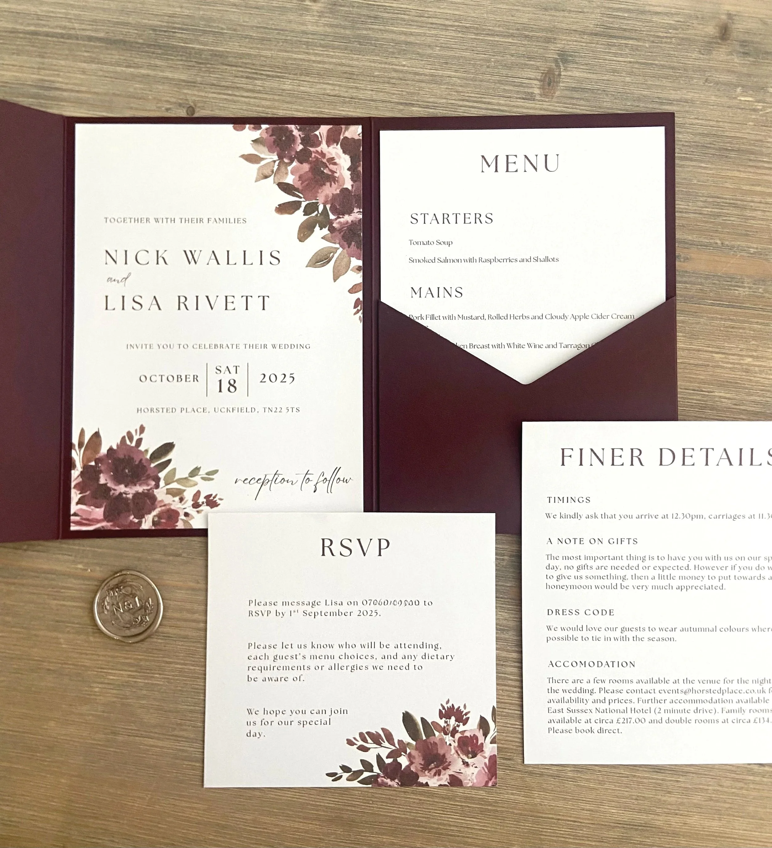 Shop Categories: All Collections Claret Collection Bow Collection Cove Collection Olive Collection Regency Collection Monochrome Collection Blossom Collection Before the Day Hen Party Engagement Party Invitations Save the Date On the Day Menus Table Numbers Place Cards Other signs Finishing Touches All Collections Before the Day On the Day Finishing Touches Claret Pocketfold Invitation Suite from £6.00 Bow Neutral Evening Invitation - Custom Order £2.90 Bow Neutral Invitation Suite from £3.00 Olive Custom Menu £1.75 Blossom Place Card with Ribbon £1.20 Cove Save the Date £1.25 Evergreen Table Numbers from £1.60 Evergreen Menu £1.50 Evergreen Evening Invitation £1.25 Evergreen Vellum Invitation Suite from £3.00 Evergreen Pocketfold Invitation Suite from £6.00 Evergreen Save the Date £1.25 Blossom Menu with Floral Place Card £2.20 Blossom Menu with Place Card and Initials £2.20 Blossom Evening Invitation £1.25 Blossom Vellum Invitation Suite from £3.00 Blossom Pocketfold Invitation Suite from £6.00 Blossom Save the Date £1.25 Olive Evening Invitation £1.25 Olive Save the Date £1.25 Olive Vellum Invitation Suite from £3.00 Cove Square Place Card £0.95 Cove Place Card with Ribbon £1.20 Cove Personalised Menu £1.75 Cove Evening Invitation £1.25 Cove Vellum Invitation Suite from £3.00 Olive Pocketfold Invitation Suite from £6.00 Cove Pocketfold Invitation Suite from £6.00 Regency Vellum Invitation Suite from £3.00 Regency Evening invitation £1.25 Regency Place Card with Ribbon £1.20 Regency Table Numbers from £1.60 Regency Menu £1.75 Regency Pocketfold Invitation Suite from £6.00 Regency Save the Date £1.25 Square place card with Bow £2.40 Square Place Card Menu £2.40 Initial Place Card Menu from £2.60 Envelopes from £1.30 Blossom Table Numbers from £1.60 Monochrome Menu with Place Name £1.50 Monochrome Vellum Invitation Suite from £3.00 Monochrome Evening Invitation £1.25 Monochrome Save the Date £1.25 Monochrome Square Place Card with Satin Bow £1.50 Monochrome Rectangle Place Card with Ribbon £1.20 Menu with name tag £4.00 Monochrome Pocketfold Invitation Suite from £6.00 Monochrome Menu with Place Card & Ribbon £2.80 Menu with name tag £2.80